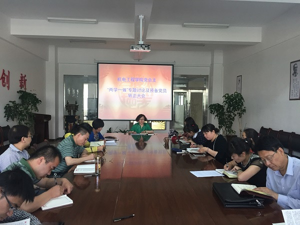 2016年6月7日上午,机电工程学院党总支在学院会议室召开“两学一做”专题学习研讨及预备党员转正大会。会议由学院党总支书记张红岩主持,全院教工党员及预备党员参加大会。 全体党员围绕“严守党章党规,规范党员日常言行”专题学习展开讨论,同时结合自身思想、行为、工作和生活等方面剖析探讨对党章党规的学习,从学习中体会党章党规的基本准则,树立行为规范,从自身做起,时刻提升自身教育服务的能力和水平,立足岗位作贡献,勇于担当有作为,始终保持干事创业、开拓进取的精气神。随后会议讨论研究关于预备党员李怀元同志转正的问题。(供稿、摄影/机电工程学院)