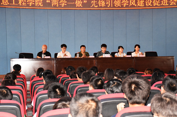 6月7日,电子信息工程学院在八楼会议中心召开“两学一做”先锋引领学风建设促进会。学院党总支书记刘保录、院长杨建平、副院长陆斌,学工办主任、团总支书记、14级学生辅导员,全院学生党员、预备党员、入党积极分子以及2015级全体学生参加了大会。