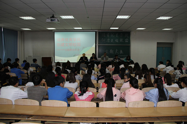 5月20日上午,人文社会科学学院在四教c101教室举行“培育优良学风·创建文明校园”主题教育大会,学院党总支书记刘军、学工办主任、团总支书记、各班班主任以及2014级、2015级全体学生参加了大会。