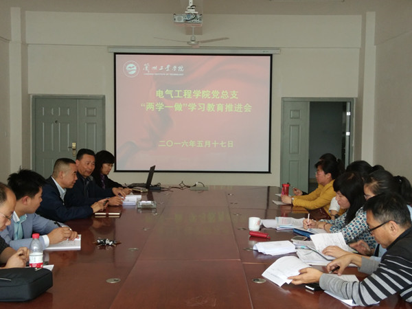 2016年5月17日下午,电气工程学院在学院会议室召开“两学一做”学习教育推进会。党总支书记吴安生,院长李双科,副院长王淑红、张维玲和全体教工党员参加了会议,吴安生主持会议。