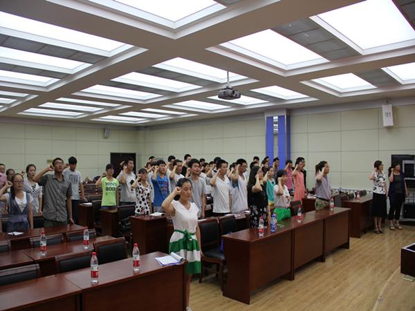 7月10日下午,机电工程学院在新JT201隆重举行2015年上半年新党员入党宣誓及老党员重温誓词大会。机电工程学院党总支书记张红岩、副院长杨永萍、学工办主任马青丽及部分教师党员和学院全体新老学生党员共同参加了此次大会。会议由杨永萍主持。