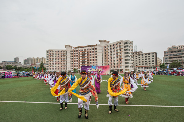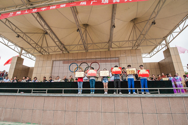 为进一步展现我校大学生健康活泼的精神风貌,引导广大同学走下网络, 6月2日下午,校学生工作部、团委、学生会在南校区足球场举办2015年校园广场舞大赛。担任本次大赛的评委有团省委学校部负责人杨成,学生处副处长吴倩,团委书记李萍,体育部教授何莉莉,副教授邢宝萍、庞志宏等。各学院党总支书记、团总支书记及部分师生一起观看了表演。