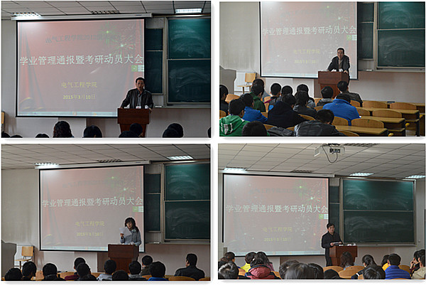 2015年3月10日下午,电气工程学院2012级本科生学业管理通报暨考研动员大会在第四教学楼C201室召开。学院领导、教师代表、全体辅导员及2012级本科生参加了本次大会。会议由张维玲副院长主持。