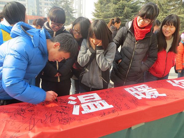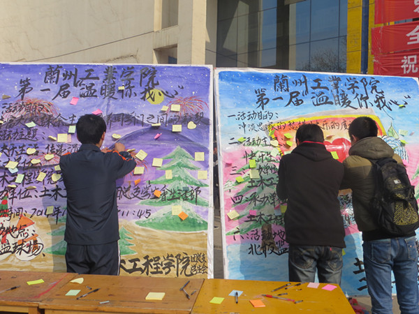 2014年12月25日,由土木工程学院团总支学生会举办的“温暖你我心”活动在北校餐厅门前拉开帷幕,学生们通过精彩的武术表演、街舞秀、诗朗诵以及新春签名送祝福活动,为全校师生送去了祝福,以及对新年的期待和美好愿望。(供稿、摄影/土木工程学院)