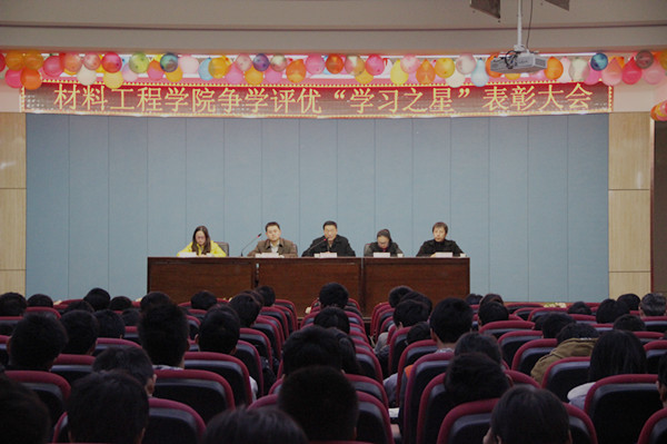 12月4日晚,材料工程学院在八楼会议中心召开“学习之星”表彰大会。学院党总支书记韩国才、副院长贾魁出席大会,辅导员郭峰、李娟娟、武明以及2012级、2013级、2014级600余名学生参加大会。
