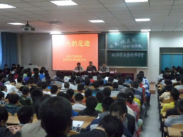 为进一步发挥优秀学生的激励作用,营造良好的学风,用身边的典型榜样教育影响广大青年学子,帮助大一新生尽快融入大学生活和学习中,9月16日下午,材料工程学院举行了“闪光的足迹”优秀大学生事迹报告会。学院党总支书记韩国才、副院长贾魁,学生政治辅导员郭峰、武明出席大会,2014级同学共计400余人参加大会。