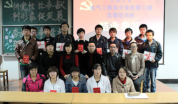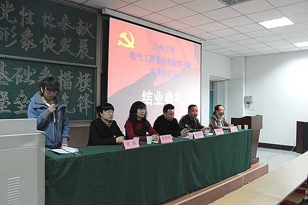 11月22日,电气工程系分党校在四教C202举行第三十七期党课培训班结业典礼。电气工程系领导、辅导员及本期培训的学员参加了结业典礼。电气工程系主任李双科主持结业典礼。 结业典礼上,学工办主任、学生党支部书记张维玲宣读了中共兰州工专党校文件。与会领导和老师为优秀学员及学员代表颁发了优秀学员证书和党课结业证书。优秀学员代表李冰交流了党课培训心得体会。 电气工程系书记、分党校校长吴安生作了讲话,他希望广大学员要进一步加强党性修养和锻炼,通过此次的党课培训树立正确的世界观、人生观和价值观,以党校学习为自身成长进步的新起点,坚定信念、勤奋学习、勇于实践、自觉奉献、奋发成长为高素质特别是具有较高政治素质的合格的建设者和接班人。