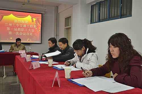 12月24日,交通工程系第一届教职工代表大会第一次会议胜利召开。校长、党委副书记陈彪,校办主任雷在福及交通工程系全体教师参加了会议。会议由交通系党支部书记张得太主持。