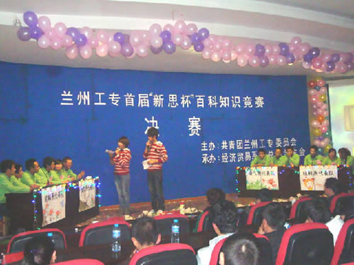 12月7日晚,由校团委主办、经济贸易系团总支承办的兰州工专首届“新思杯”百科知识竞赛决赛在八楼学术报告厅举行,五百余名同学观看了比赛。 决赛在参赛选手表演的《我相信》歌舞中开始。风趣幽默的题型设计和选手机智勇敢的回答方式博得了现场观众的阵阵喝彩和热烈掌声。在经过“‘气’心协力”、“力争上游”、“先声夺人”、“娱乐十分”、“舍我其谁”等五个环节的激烈较量后,最终经济贸易系代表队夺得本届知识竞赛的一等奖,机械系、社科系和电气系代表队分获二、三等奖和优秀奖。 本届百科知识竞赛分初赛、复赛、决赛三个环节进行,旨在丰富同学们课余生活,增强对知识的热爱,激发对真知的探求,为加强学风建设做出贡献。