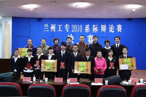 由共青团兰州工专委员会主办,兰州工专学生会、演讲与辩论协会承办的“兰州工专2010系际辩论赛”决赛12月13日在八楼学术报告厅举行。经过紧张激烈、精彩纷呈的比赛,机械工程系代表队获得冠军,外语系代表队获得亚军,软件工程系和社会科学系代表队获得季军。外语系刘雪琴同学获得本届辩论赛“最佳辩手”荣誉称号,九名同学获得“优秀辩手”荣誉称号。