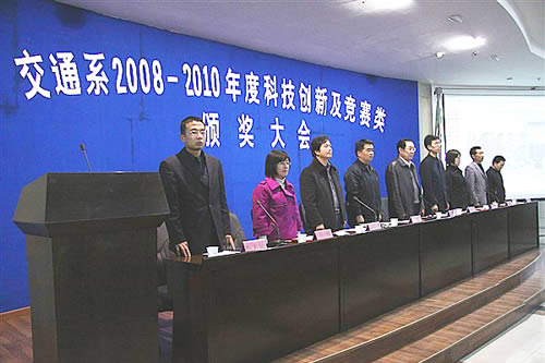 10月26日下午,交通工程系2008年-2010年大学生科技创新及竞赛类获奖学生表彰大会在八楼学术报告厅举行。校长助理、教务处处长李贵山、学生处处长温小强、招生就业处处长陆琪、校团委副书记李萍及全系师生参加了会议。会议由交通工程系党支部书记张得太主持。