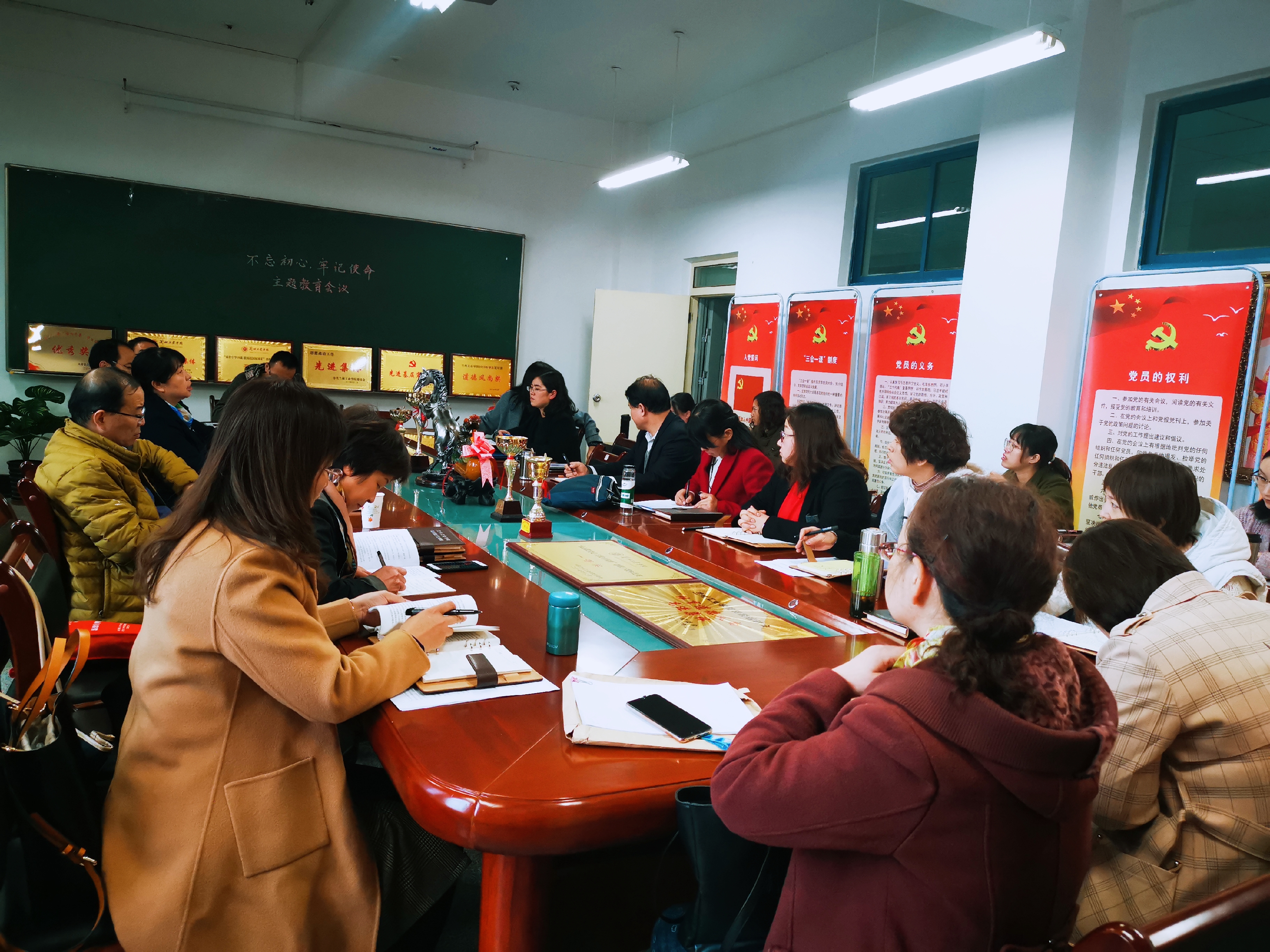 2019年11月5日下午,马克思主义学院教工党支部召开了政治理论学习暨“不忘初心·牢记使命”主题教育对照党章党规找差距专题会。学院院长张小华主持会议,党总支书记王重贤、组织员卢生康,以及全体教师党员参加了会议。