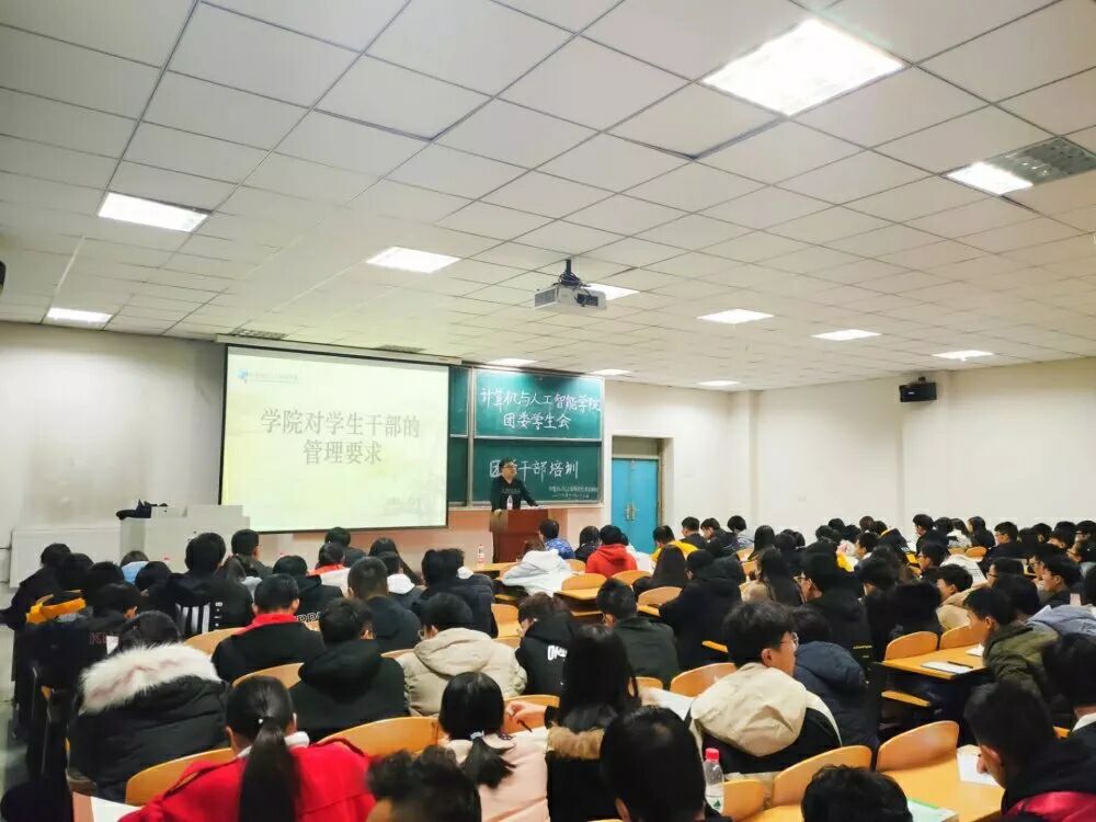 2019年12月31日,计算机与人工智能学院在科技楼607举行2019年团学干部培训结业仪式,学院党委书记赵亚明、院长李向伟及全体辅导员、培训学员参加了仪式。