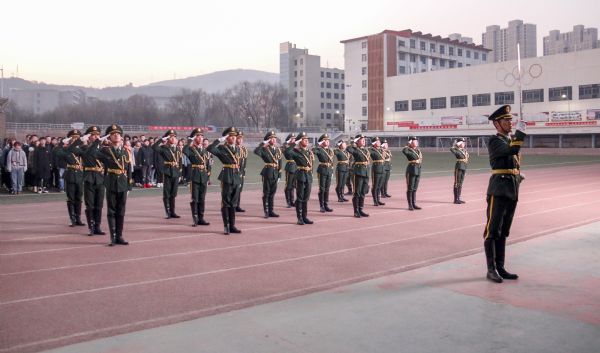 上午八时,国旗护卫队全体成员整齐列队,旗组和佩刀指挥带领着仪仗方阵步履坚定、威武前行。伴随着雄壮嘹亮的中华人民共和国国歌,鲜艳的五星红旗冉冉升起,同学们以饱满的精神状态肃然而立,庄重地行注目礼,表达对祖国诚挚的新年祝福。