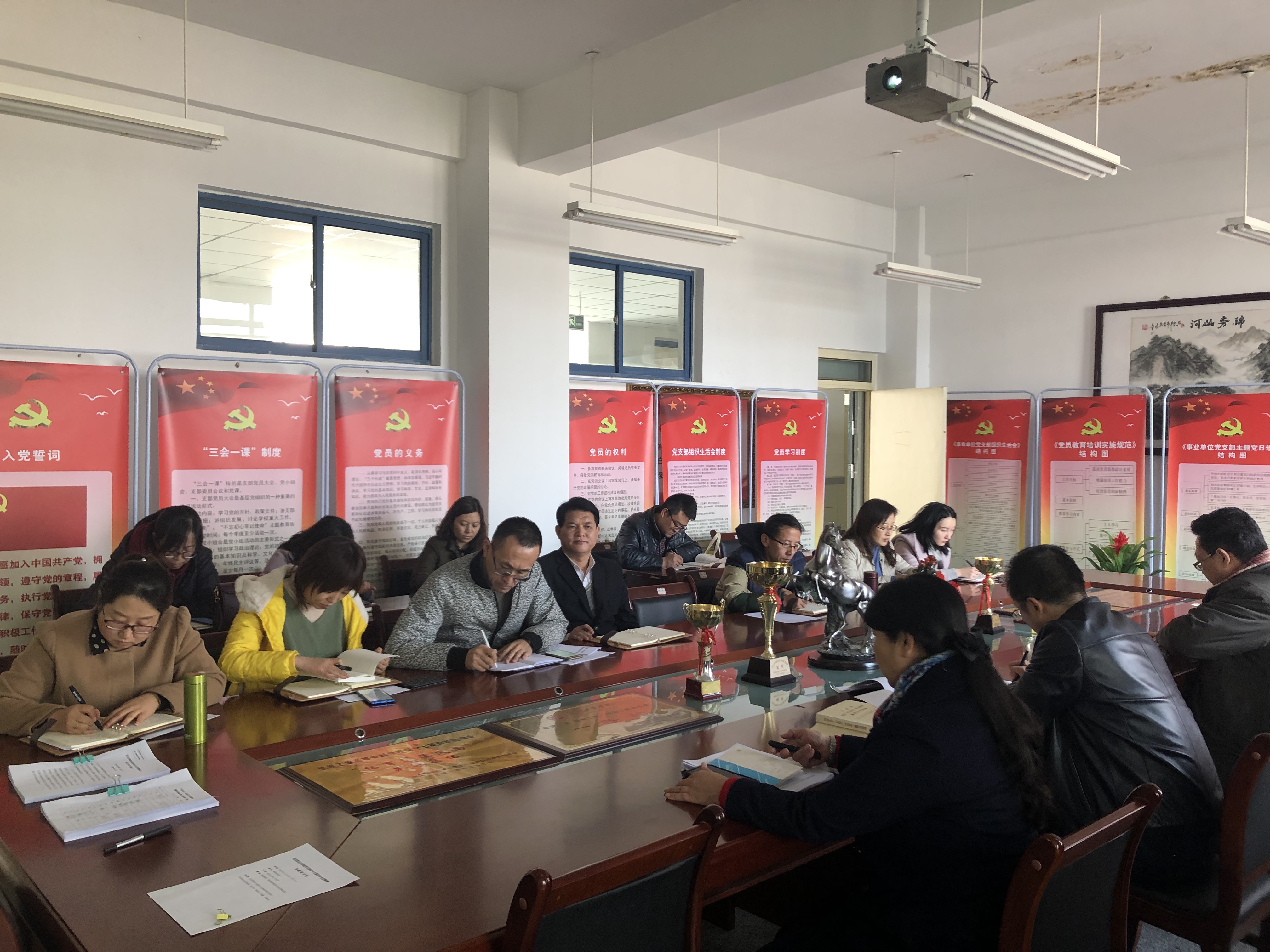 张小华以“坚定中国特色社会主义制度自信,做合格的共产党员”为题,围绕党的十九届四中全会的历史背景和重大意义、基本框架和主要内容,中国特色社会主义制度建设的历史脉络、中国共产党制度探索的里程碑意义等方面,为全体教师党员作了辅导报告。随后,卢生康、徐凌云、马福云、张鑫作了学术研讨发言,并就如何深入学习贯彻党的十九届四中全会精神,畅谈了学习认识和体会。