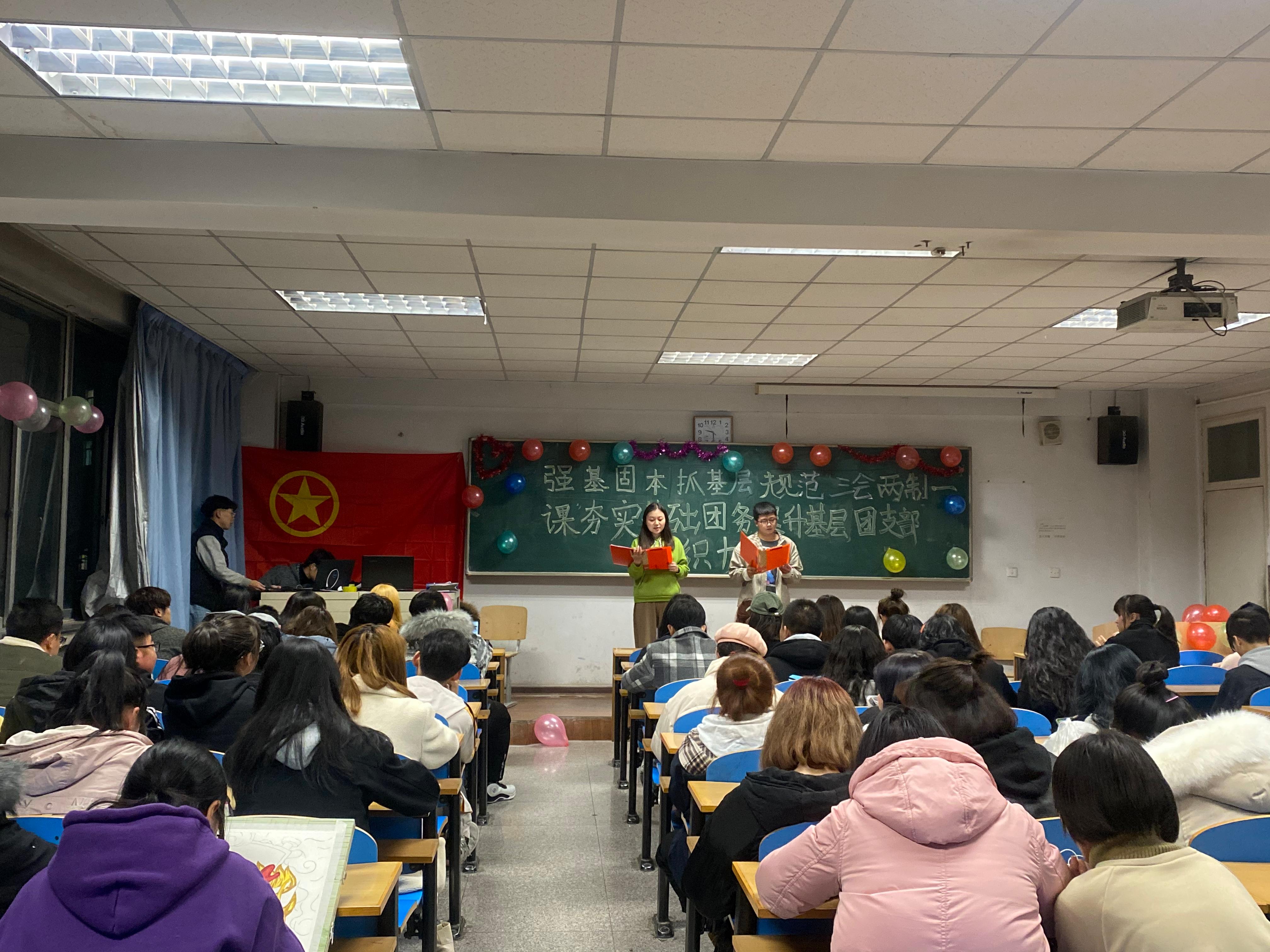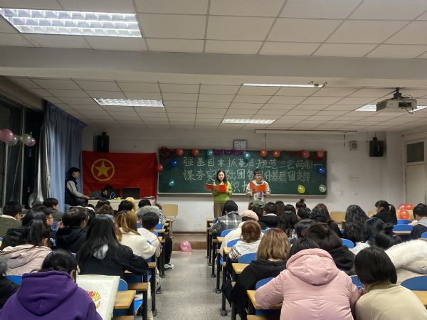 11月以来,全校各级团组织、各班级团支部结合团支部标准化规范化工作要求,认真学习《中国共产主义青年团章程》、《中国共产主义青年团支部工作条例(试行)》、《中国共产主义青年团普通高等学校基层组织工作条例(试行)》、《基层团组织规范化建设工作的实施方案》等制度条例,广泛开展‘“强基固本抓基层”——规范“三会两制一课”、夯实基础团务、提升基层团支部组织力’主题团日活动。各学院团委书记、班主任、辅导员与团员青年一起参加主题团日活动。