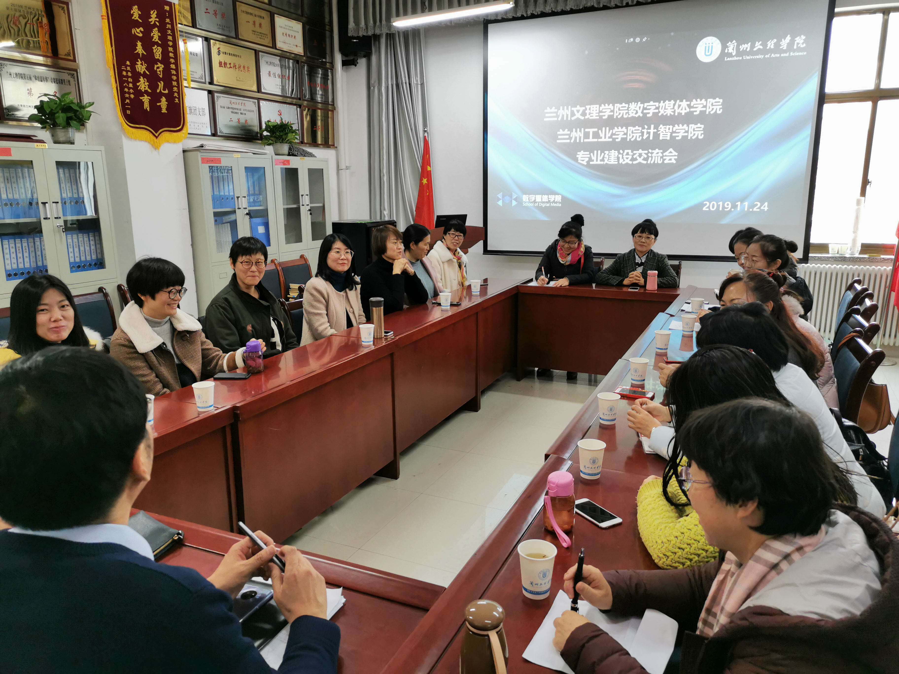 2019年11月24日下午,计算机与人工智能学院赴兰州文理学院数字媒体学院进行专业建设交流研讨。 研讨会上,双方各专业负责人对专业建设作了详细介绍,针对专业建设中存在的问题进行了交流研讨,围绕迎接本科教学评估中相关的做法、好的经验进行了深入交流。本次交流会,旨在共同谋划网络工程、软件工程、数字媒体技术、智能科学与技术专业建设。双方与会人员还就规范毕业(设计)论文、试卷、教学日志等教学文档作了交流。