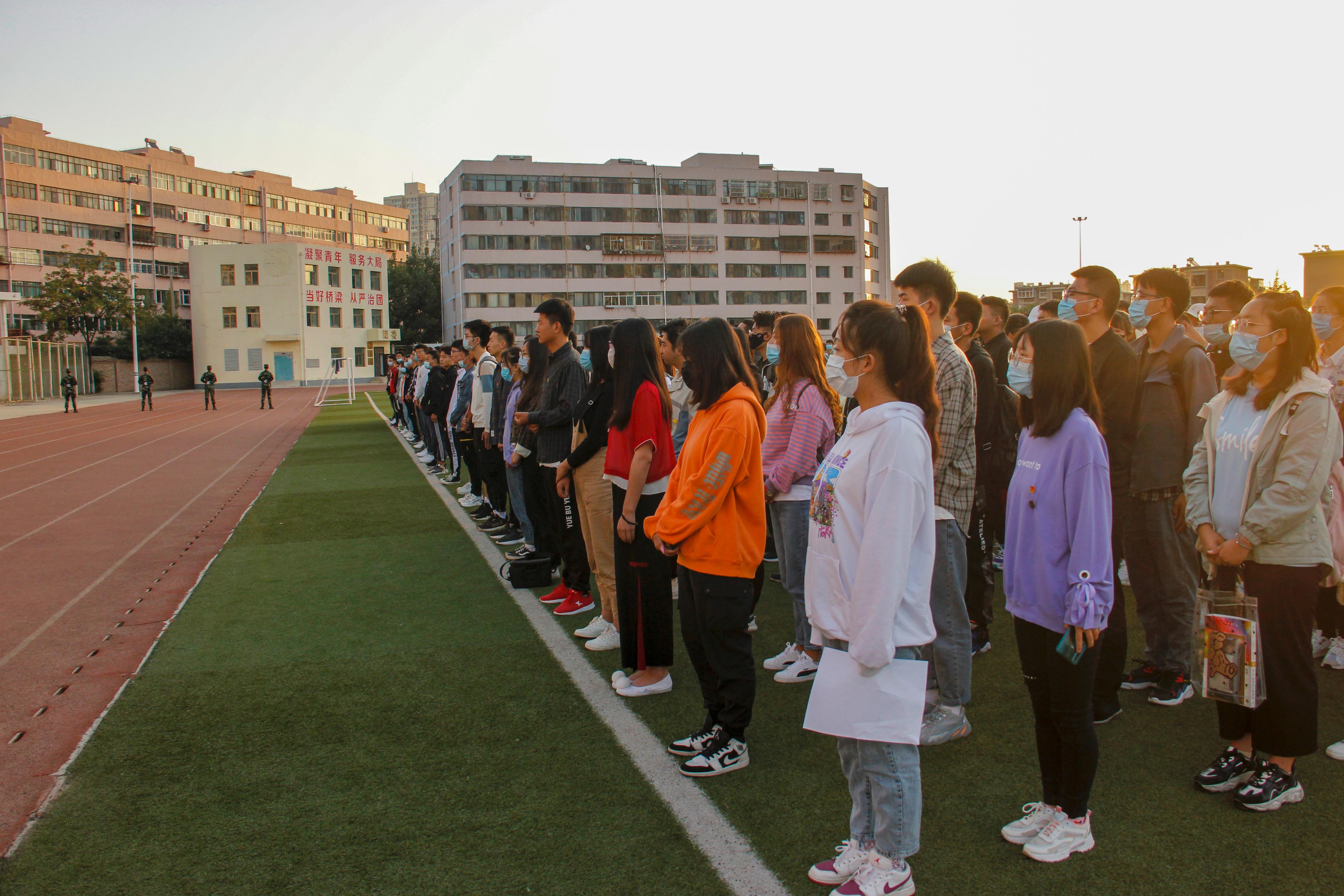 9月7日上午7时,校团委在南校区田径场举行2020-2021学年新学期首次国旗观礼仪式。校团委及各学生组织师生代表共计260余人参加仪式。