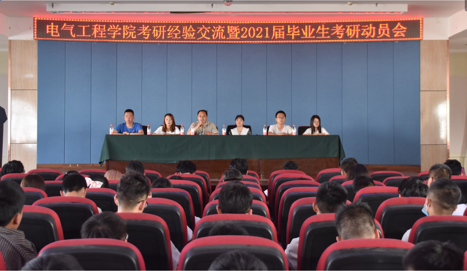 为进一步调动学生的考研积极性,增强考研斗志、激发学生的考研热情, 7月3日下午,电气工程学院在八楼会议中心举办2020届考研学生经验交流暨2021届毕业生考研动员会。学院党委书记王重贤主持会议,相关教师、2020届考研学生代表以及2017级全体学生参加会议。