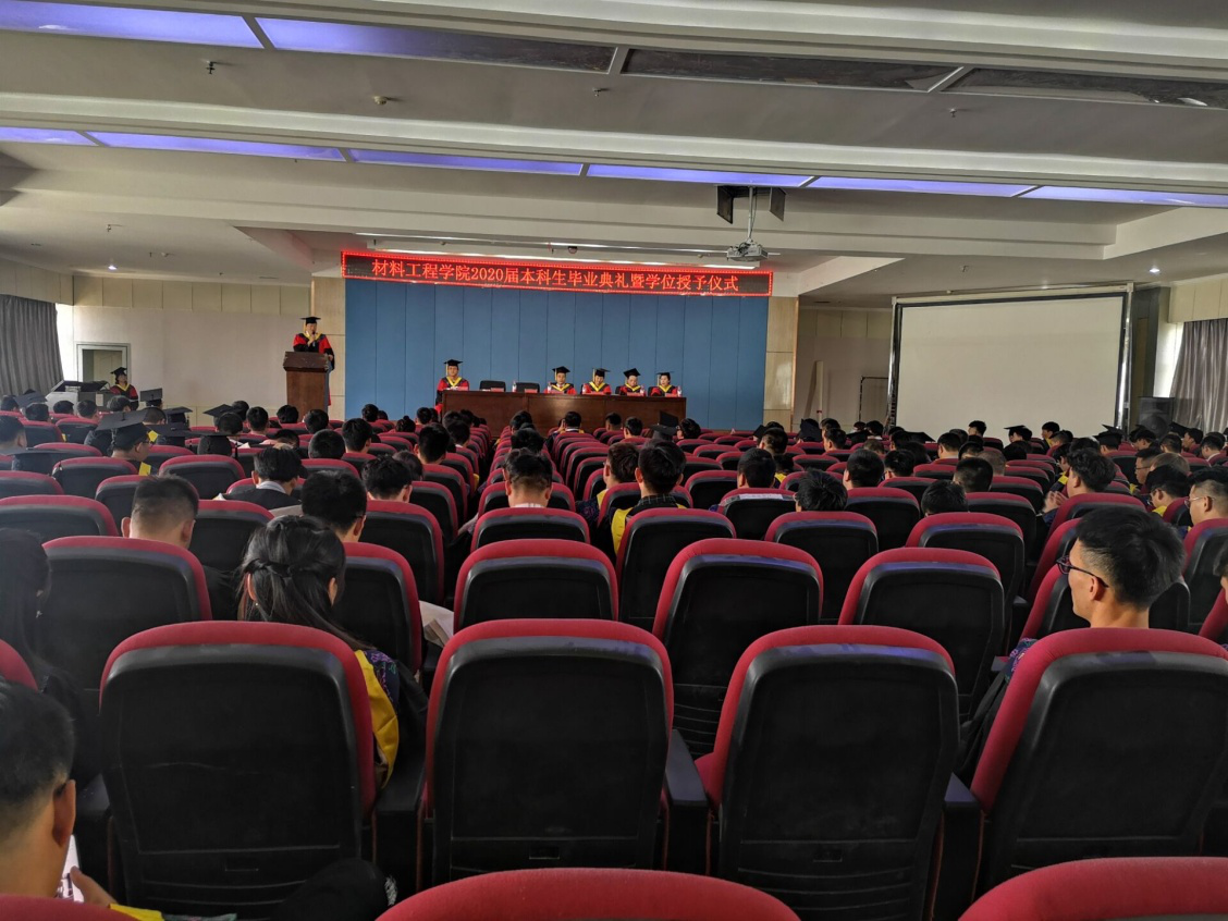 7月2日,材料工程学院在八楼会议中心举行2020届本科生毕业典礼暨学士学位授予仪式。学院学位评定分委员会全体成员、毕业生指导教师、2020届本科毕业班班主任、辅导员,2020届全体本科毕业生参加了典礼。毕业典礼由副院长余华俐主持。